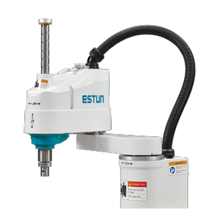 ESTUN ER10-500-SR는 평면 움직임을 위한 두 개의 회전 관절, 위 및 아래 움직임을 위한 수직 선형 축 및 끝 효과자 방향을 위한 회전 축으로 구성된 4 축 SCARA 구조를 갖추고 있습니다.이 구성은 빠른 수평 위치를 지원하고 정확한 수직 삽입을 지원하며, 이는 부품 배치, 나사 고정 및 압력 맞춤 작업과 같은 작업에 필수적입니다.